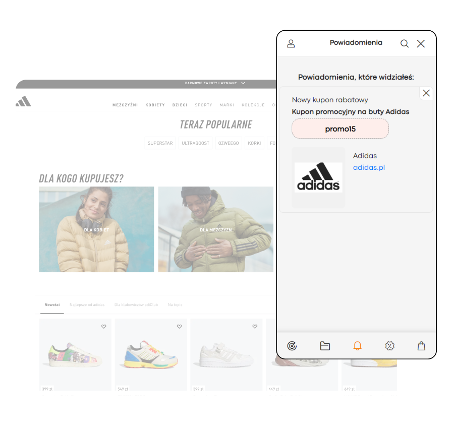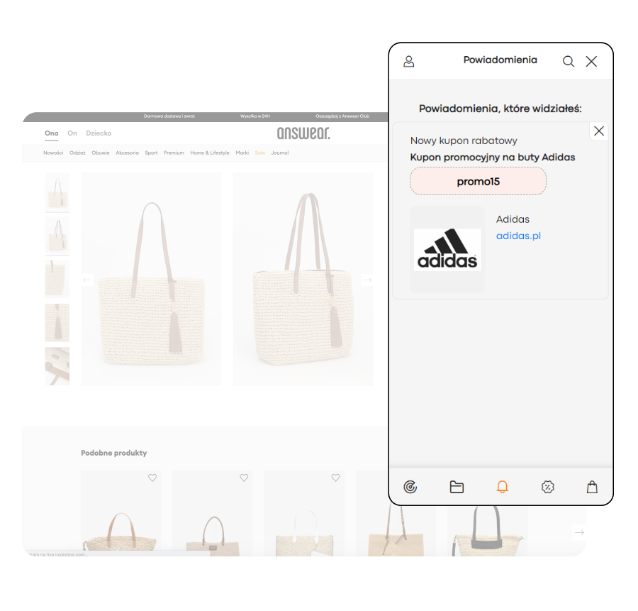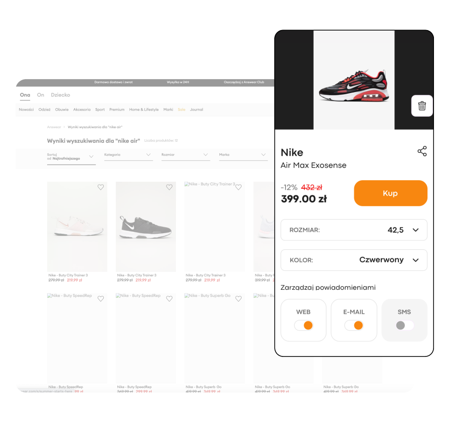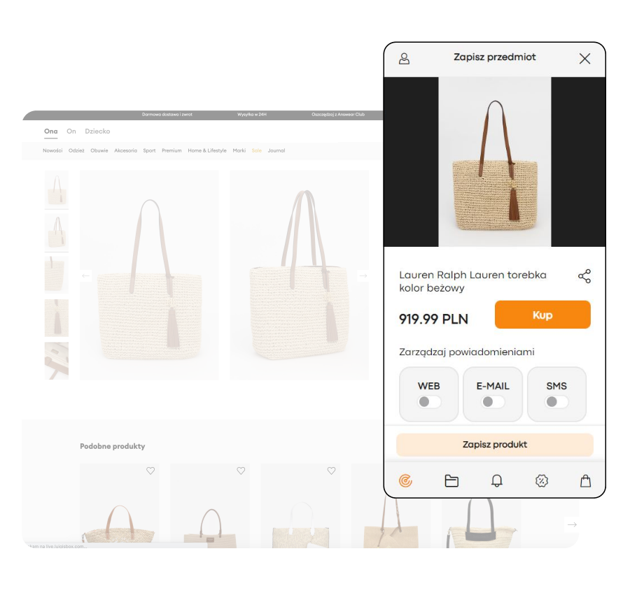 Dla każdego produktu, który dodałeś do zapisanych, a który nie był dostępny (np. nie było twojego rozmiaru albo koloru, który najbardziej ci się podoba) dostaniesz powiadomienia od razu gdy pojawi się w sklepie.